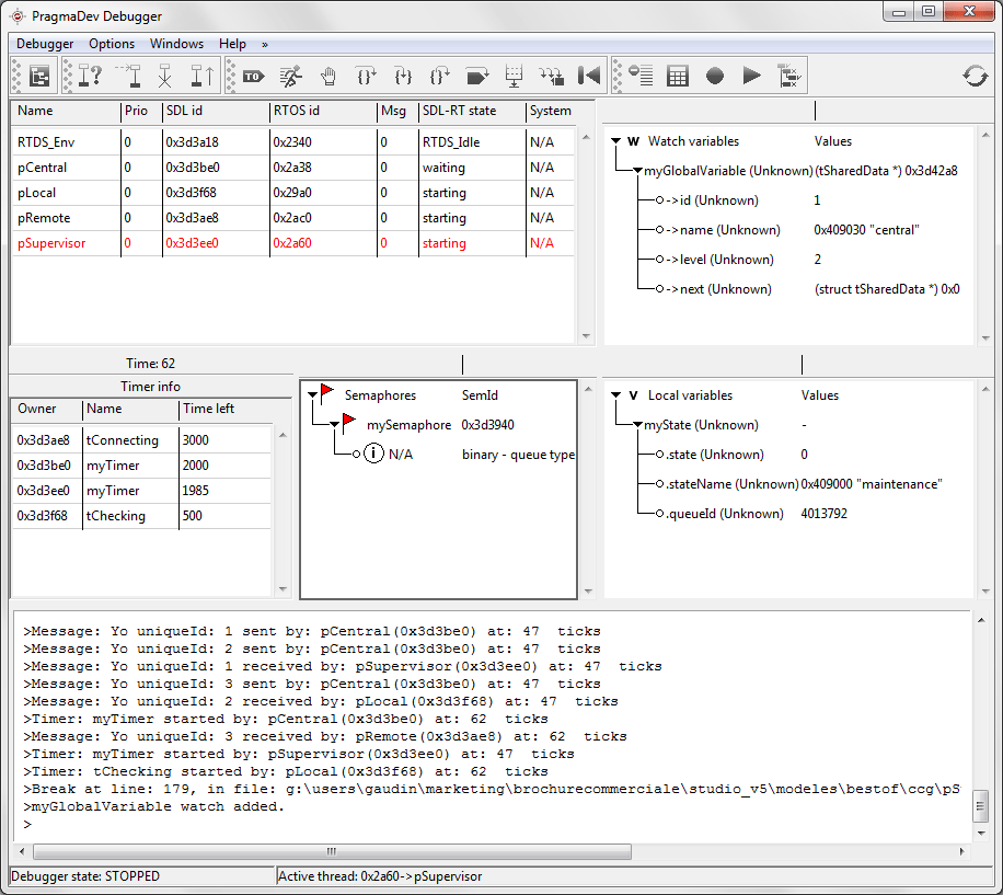 PragmaDev Developer model debugger.