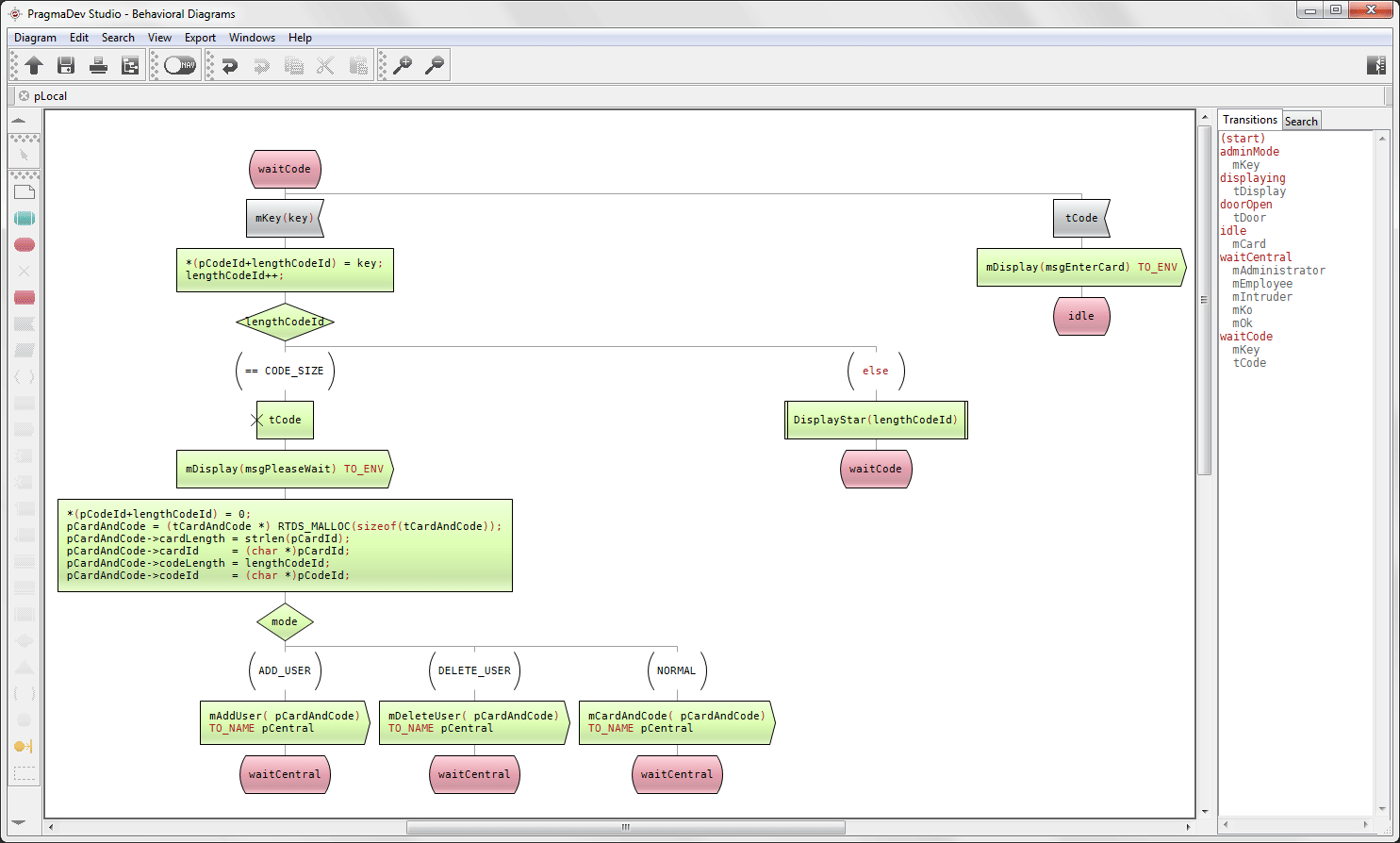 PragmaDev Developer state machine model.