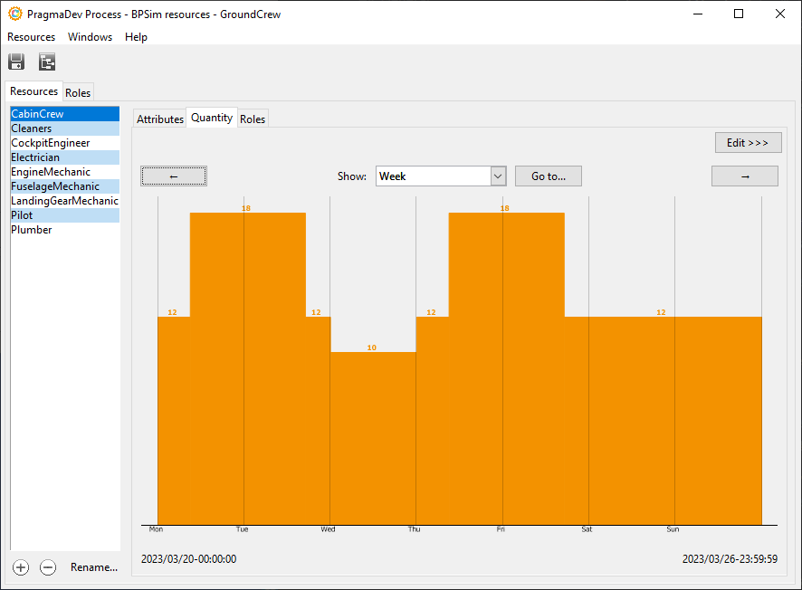 Define the resources in your organization as well as their availability in a calendar. Each resource can have a role (that can be common to another resource) and a performance factor and a cost factor (some resources are faster than others and are more or less expansive).