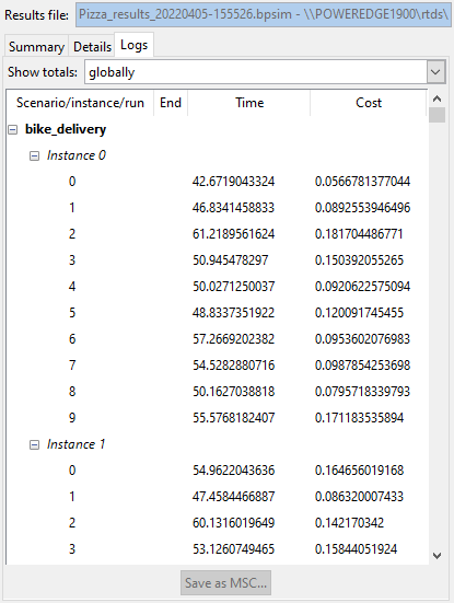 Each replication during the simulation is logged with all the basic information for a broad analysis.