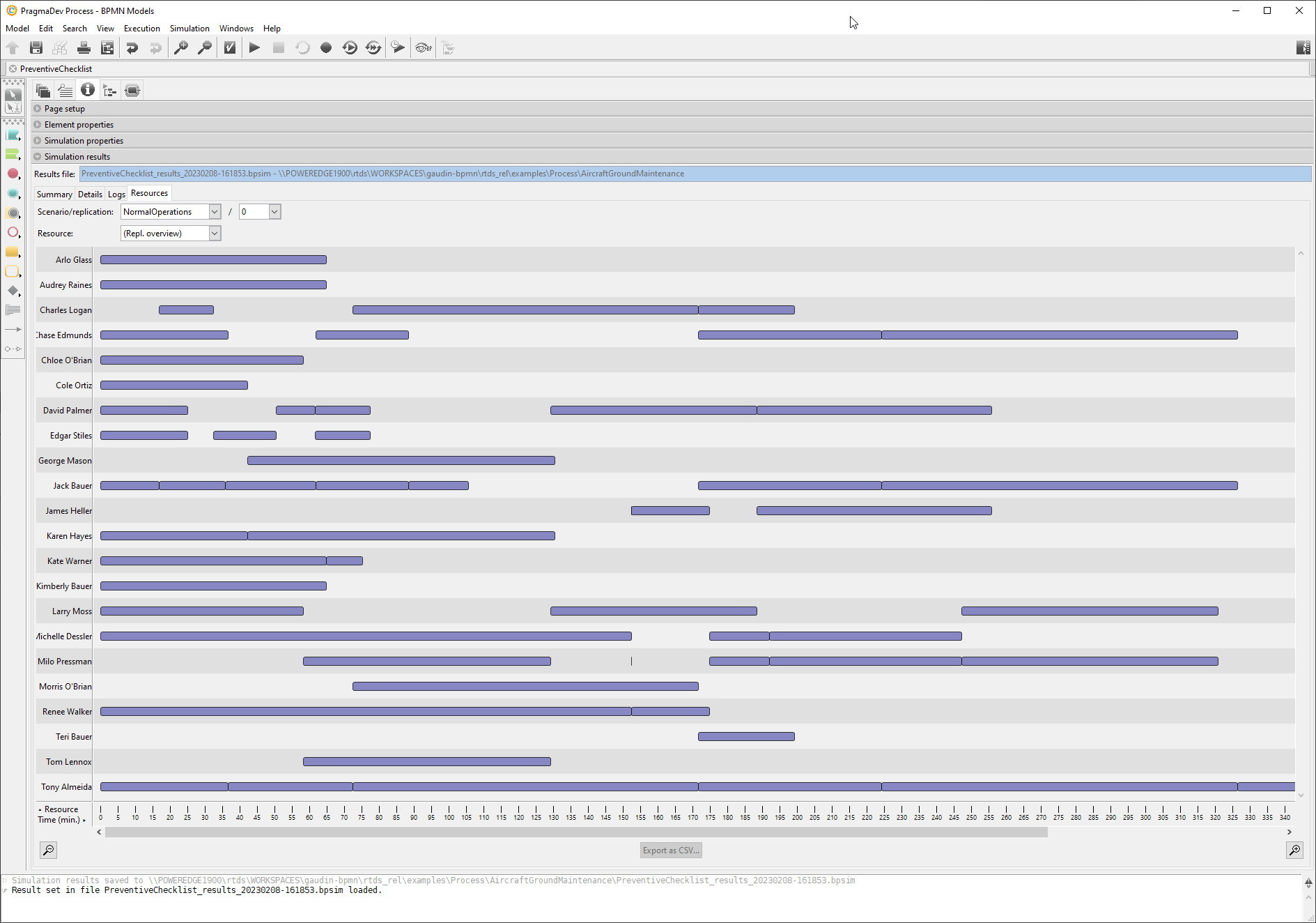 The resource usage during the simulation can be analyzed for the purpose of optimisation.